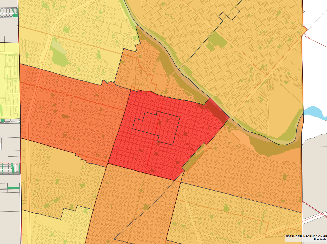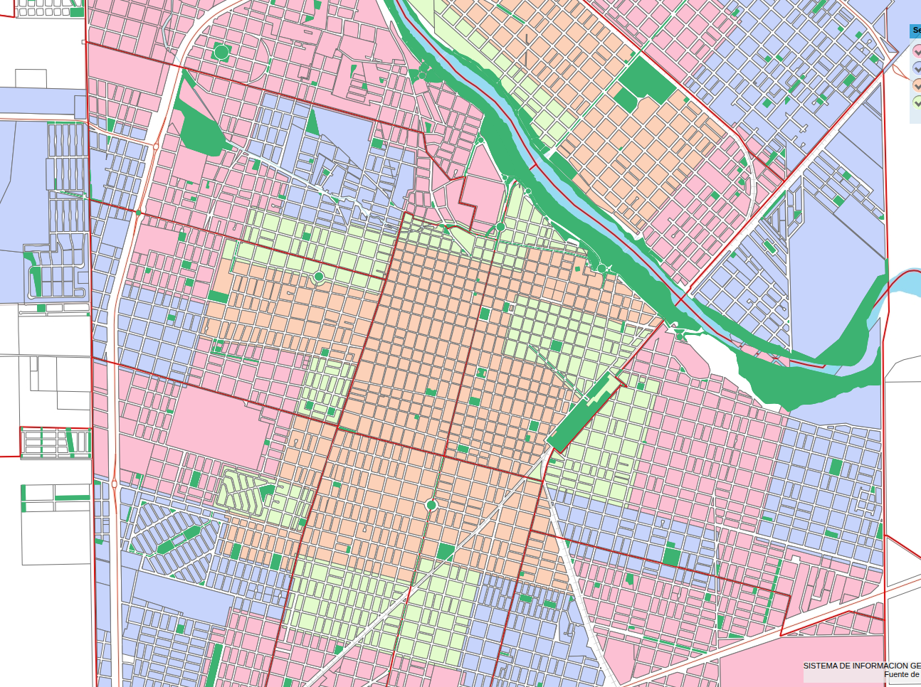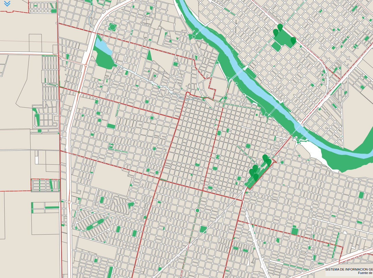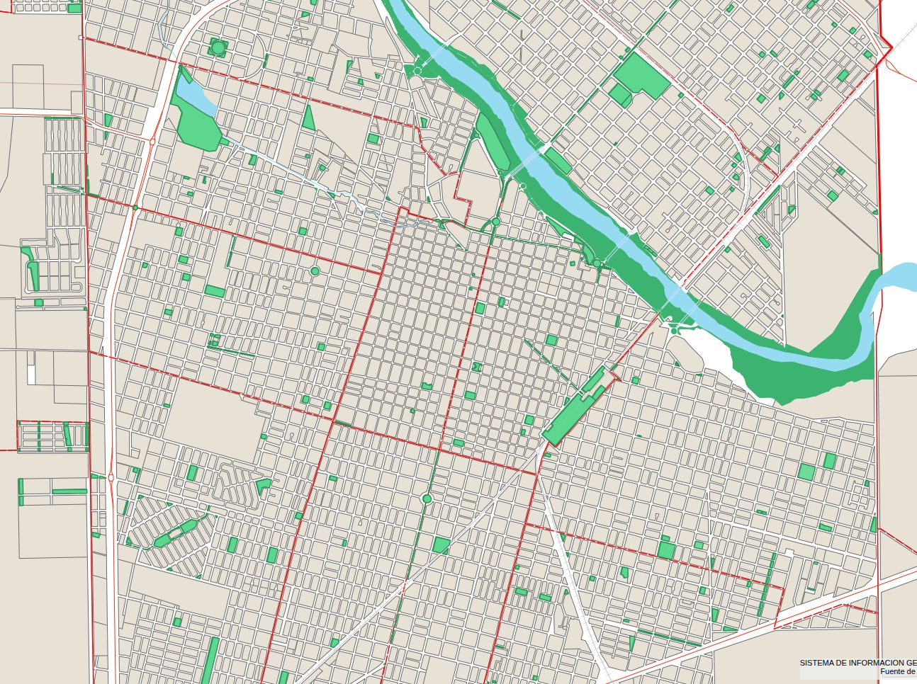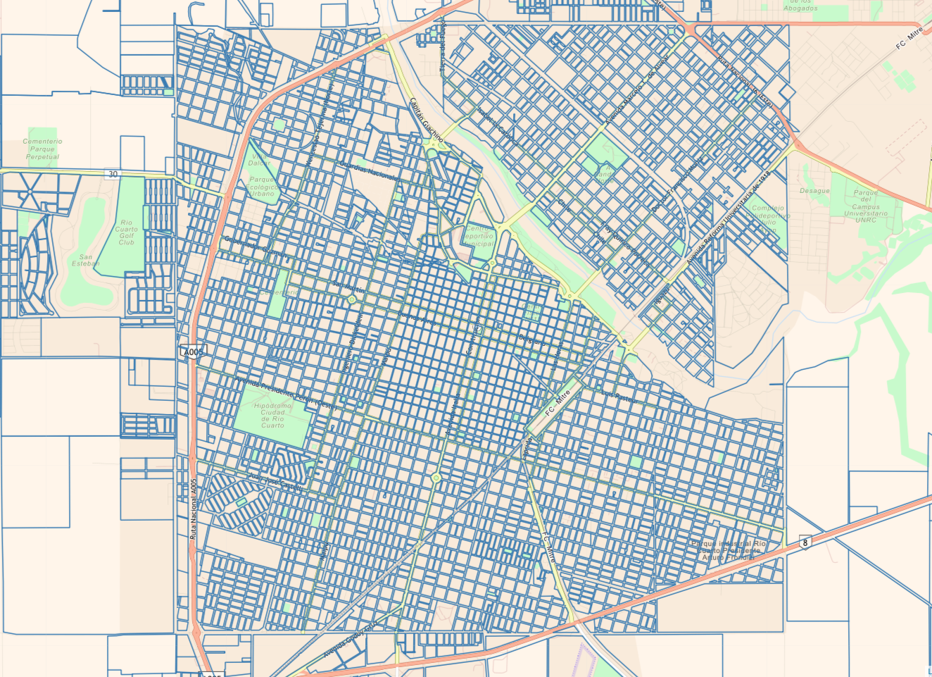 Mapa de la ciudad de Río Cuarto con base del Instituto Geográfico Nacional (ARGENMAP), en el cual se puede encontrar hasta el nivel parcelario.