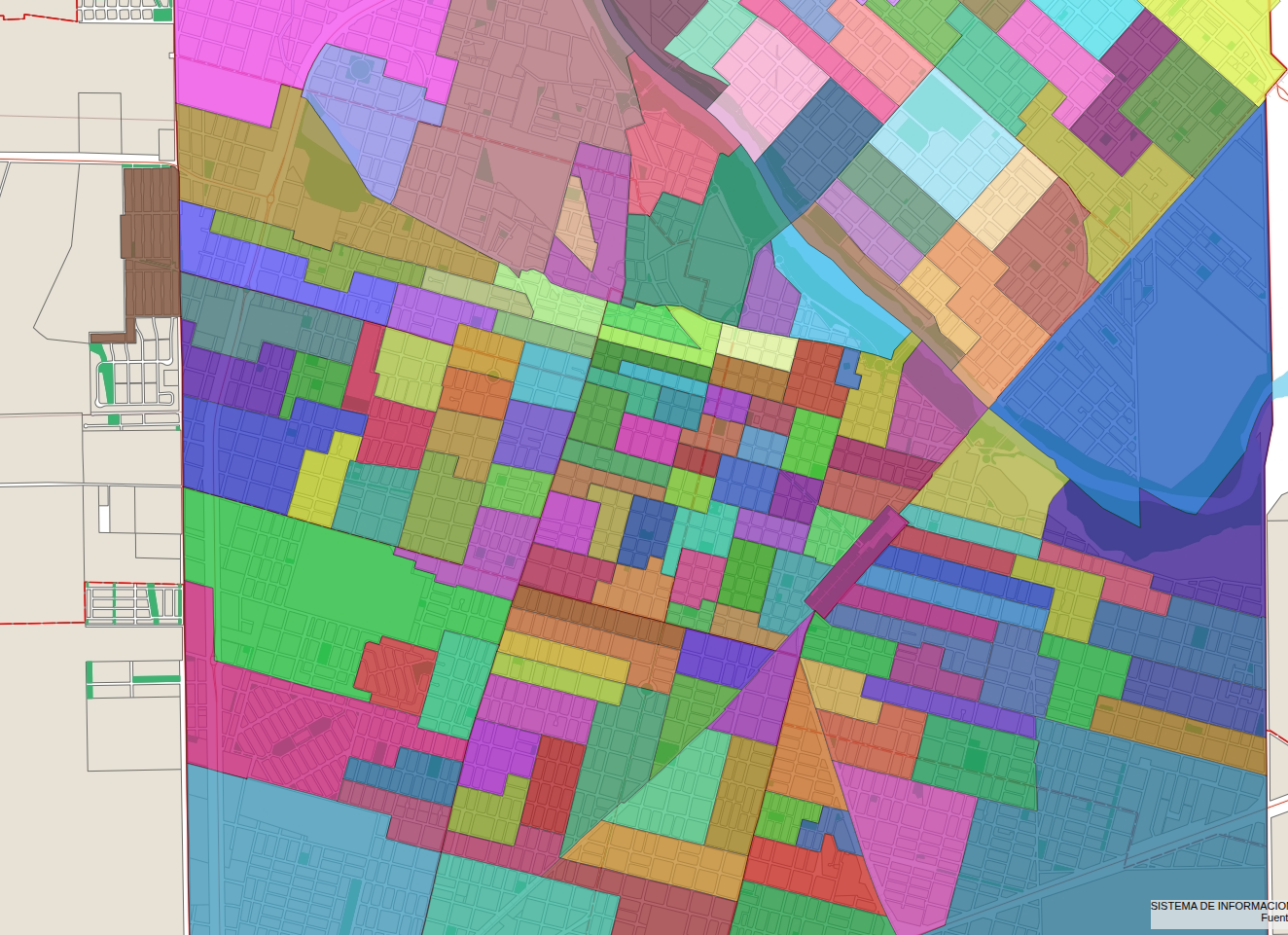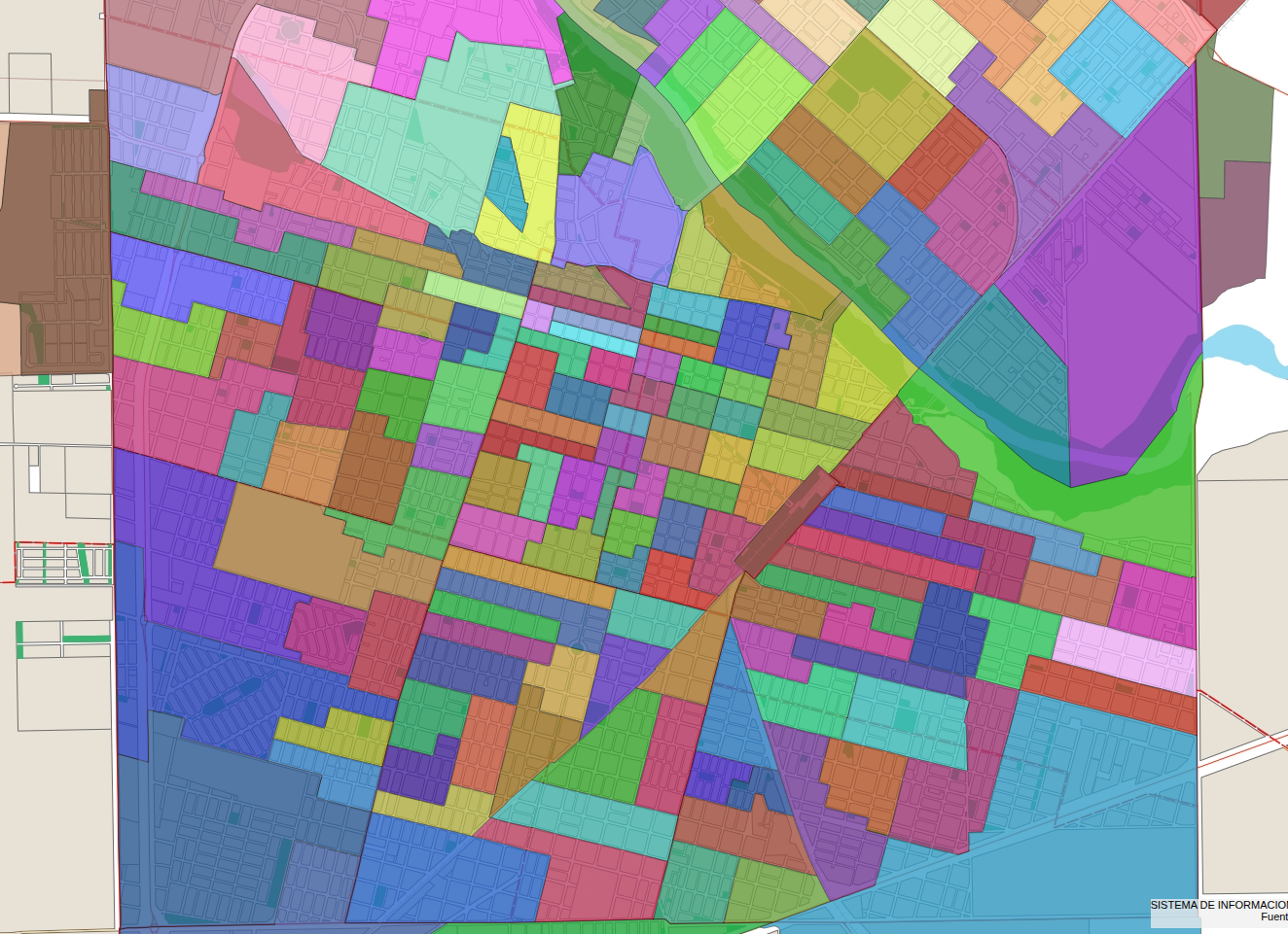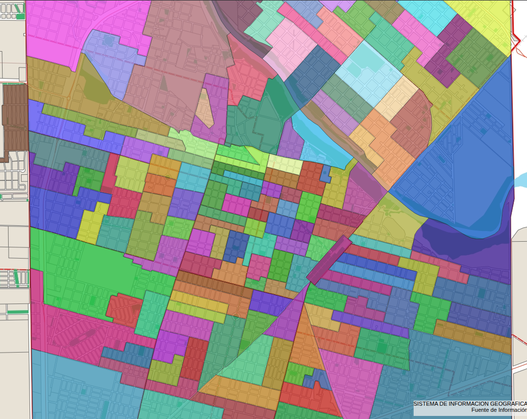 Mapa de la ciudad con base local y actualización en el Sistema de Información Geográfica de la municipalidad, en el cual se puede encontrar hasta el nivel parcelario.