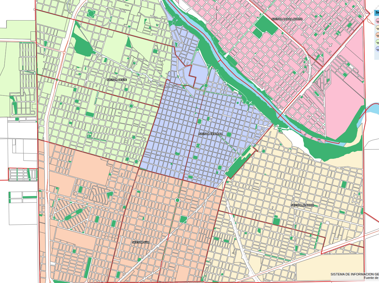 Mapa de la ciudad dividida por sectores para el presupuesto participativo.