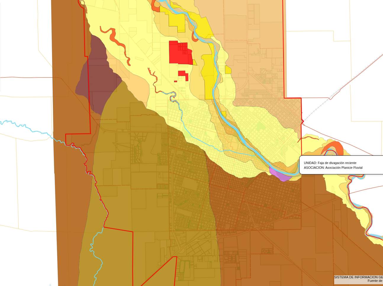 Mapa geológico brindado por el área de Geomorfología de la UNRC.