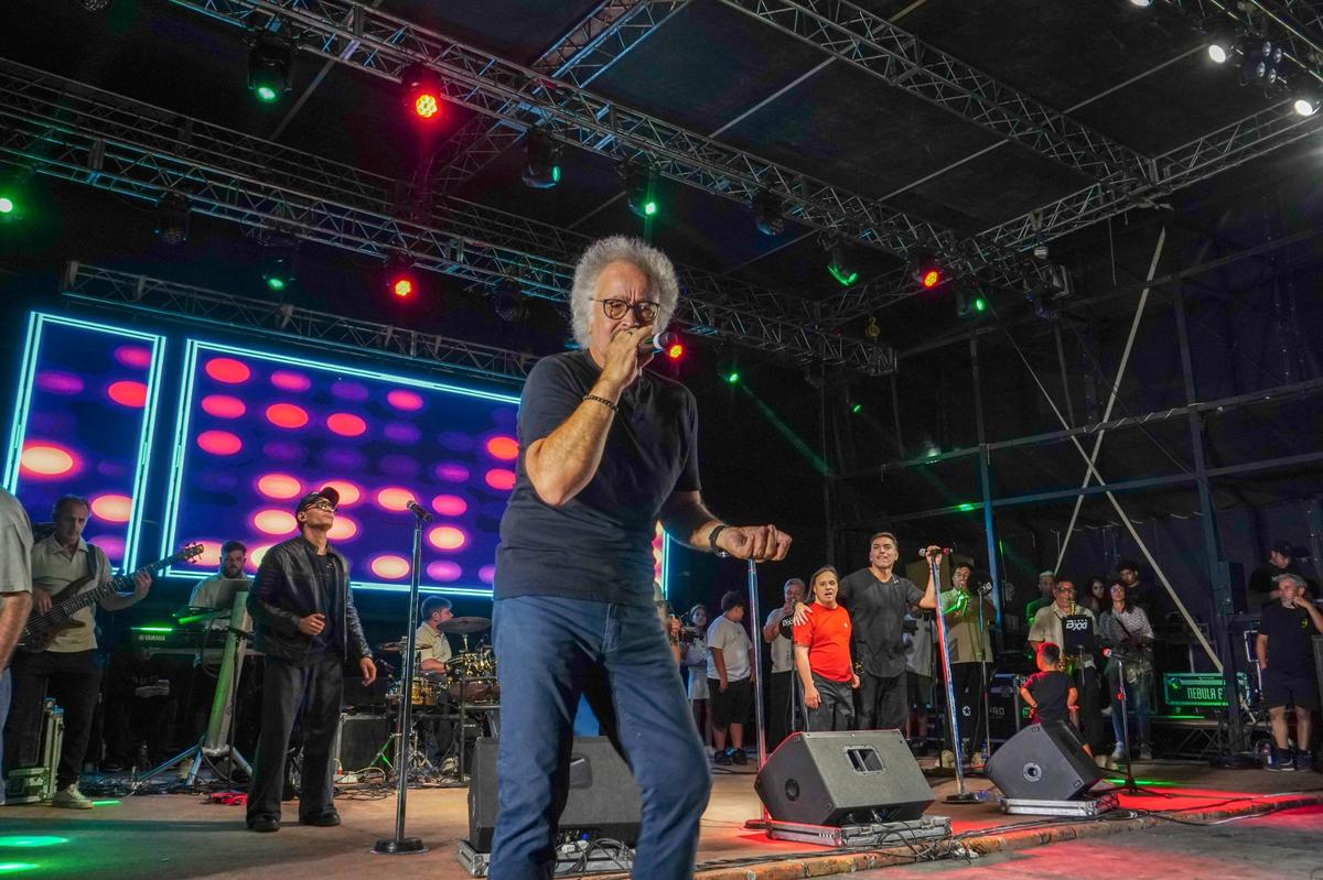 Uno de los momentos más significativos fue la intervención del artista plástico Gaston Liberto , quien inauguró un corredor cultural con una obra que retrata la energía del cantante y convierte la vereda del anfiteatro en un reflejo vivo de la historia del cuarteto .