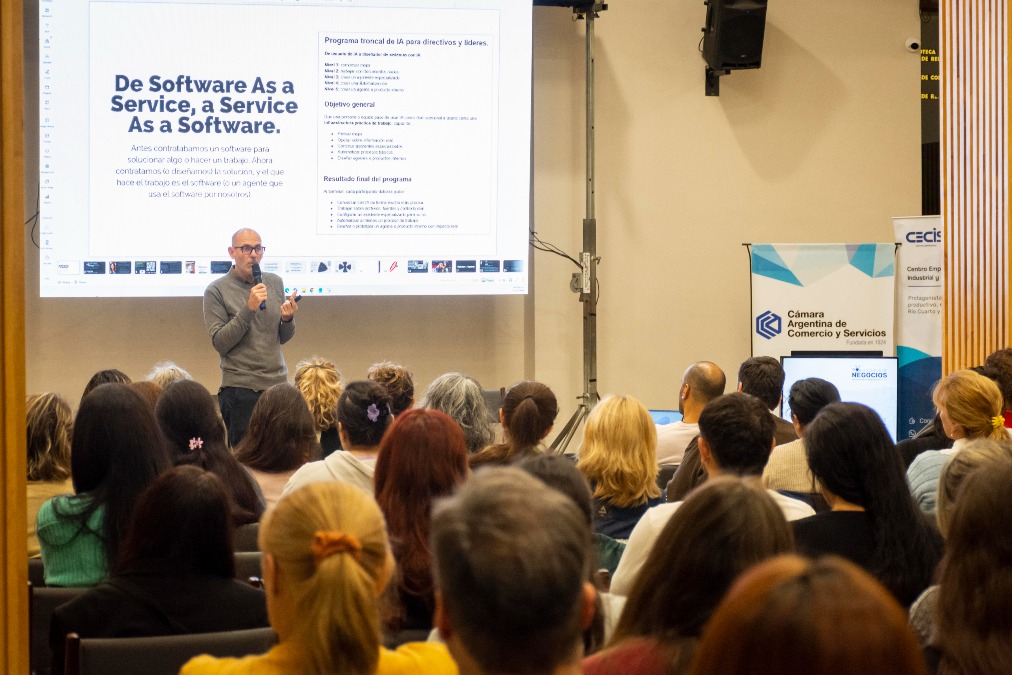Durante la jornada, el especialista abordó estrategias y herramientas digitales aplicadas a los negocios, con especial foco en inteligencia artificial, cómo crear contenido, agentes y automatizaciones, software y marketing digital , brindando a los participantes recursos prácticos para mejorar la gestión, optimizar procesos y potenciar la presencia online de sus emprendimientos y empresas.
