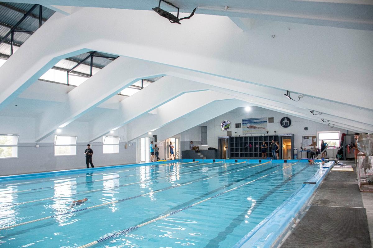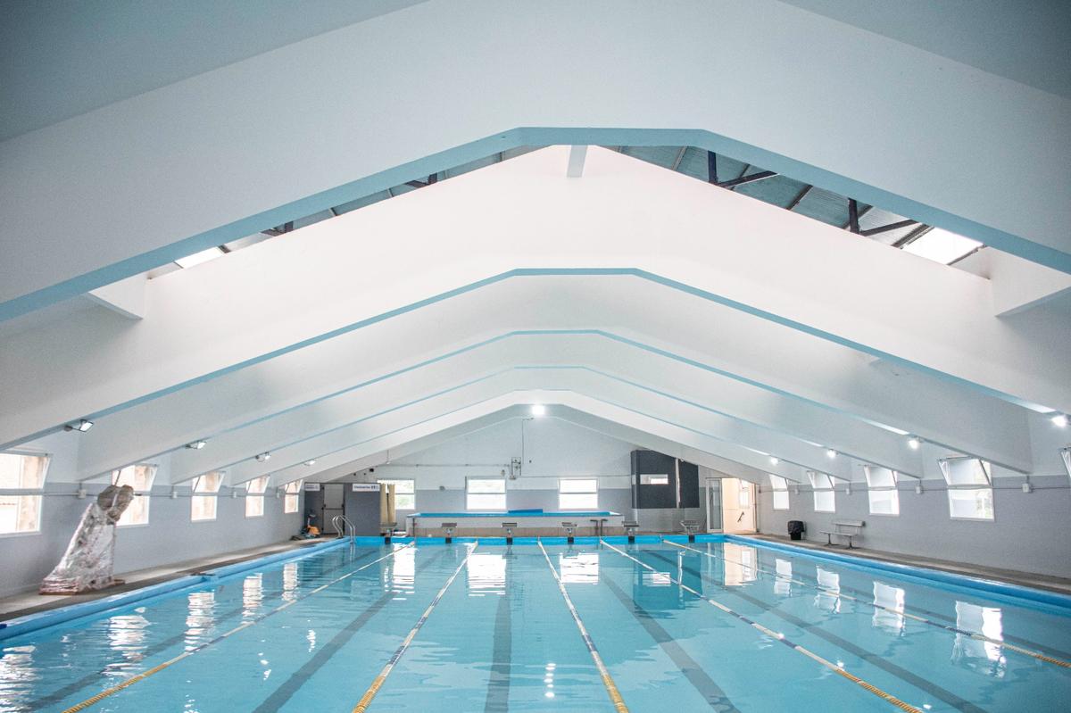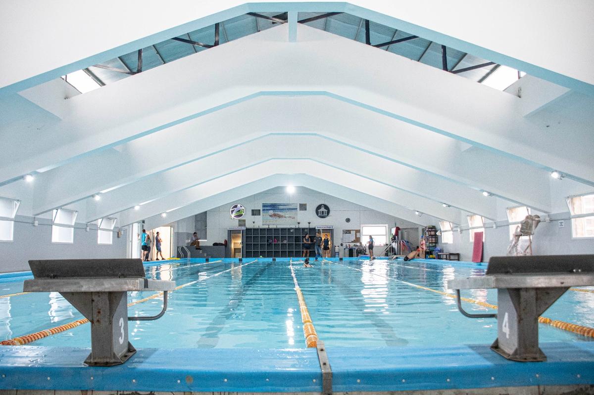 En esta oportunidad, además de la reparación del material de cemento, se incorporaron nuevas vigas de acero para reforzar la estructura y se renovó el revestimiento lateral con material translúcido, lo que permite un mayor ingreso de luz natural al natatorio.